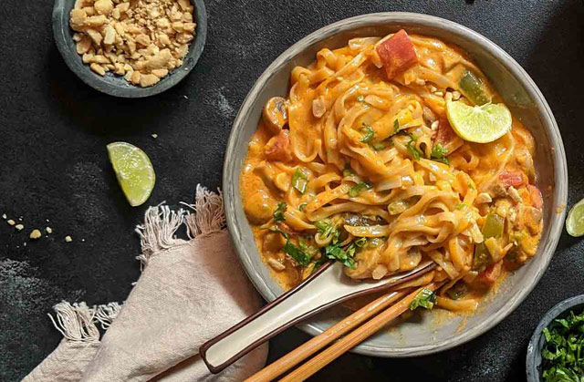 AThai Udon, udonnudlar, kyckling, grönsaker, kokosmjölk, thaicurry sås