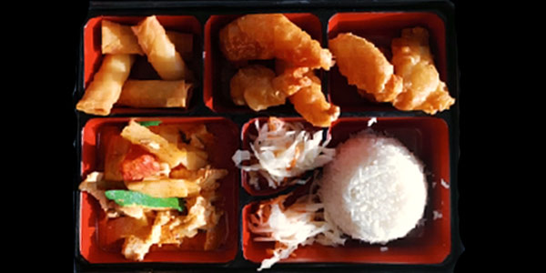 C Tre små rätter: Vårrullar, Friterad och Röd thaicurry kyckling
